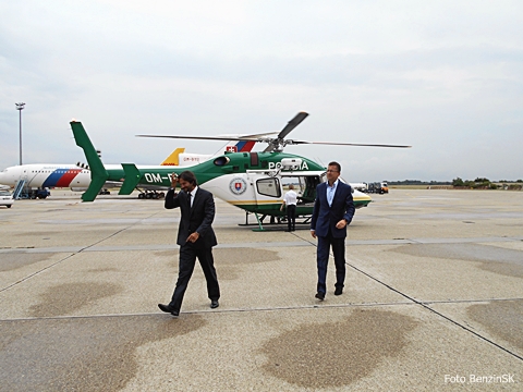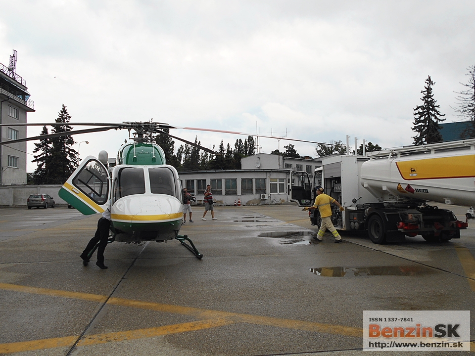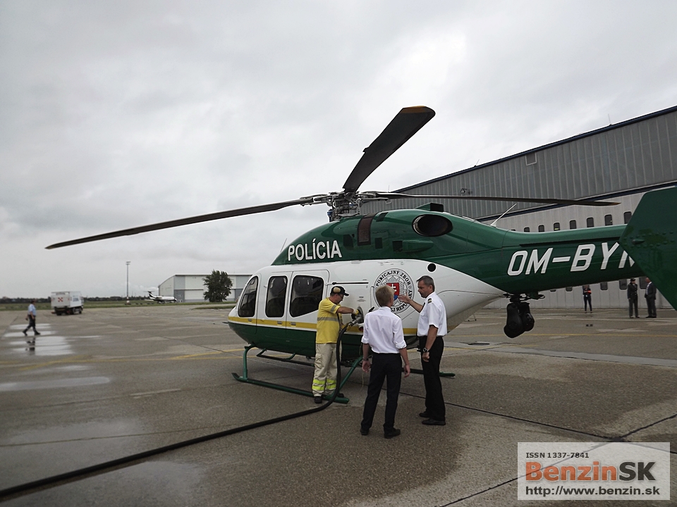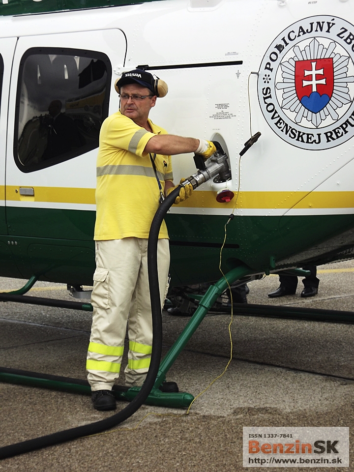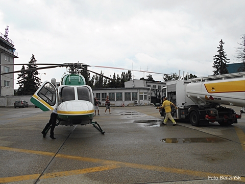 Pracovníci pozemného personálu pripravili vrtuľník k odletu: vytlačili ho z hangáru a k helikoptére prišla cisterna. Zaujala nás komunikácia medzi "pumpárom" a pilotom, pretože sa rozprávali o množstve paliva potrebnáho na let v galónoch, a nie v litroch ako to býva zvykom pri automobiloch. Ako prví si vrtuľník vyskúšali ministri vnútra a obrany.