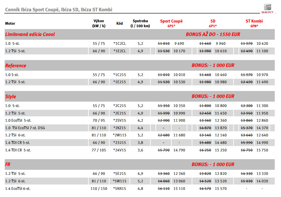 Modernizovaný SEAT Ibiza sa bude naďalej vyrábať v troch verziách karosérie ako trojdverový model Ibiza SC Sport Coupe, päťdverový model a kombi Ibiza ST Sport Tourer. Kombi poskytuje na kompaktnej ploche prekvapujúco veľkú úžitkovú hodnotu. Napriek športovému dizajnu karosérie má veľkorysý batožinový priestor s objemom od 430 do maximálne 1.164 litrov. Umožňuje prepravu dvoch bicyklov s demontovaným predným kolesom, čo ocenia vyznávači aktívneho životného štýlu.