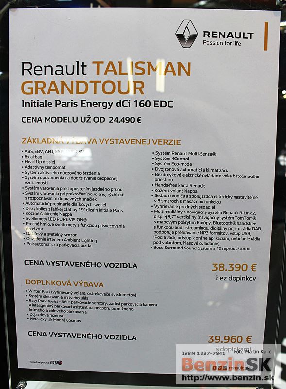 Na 26. medzinárodnom salóne automobilov v Bratislave predstaví značka Renault očakávanú novinku Talisman v karosárskej verzii kombi - Talisman Grandtour.