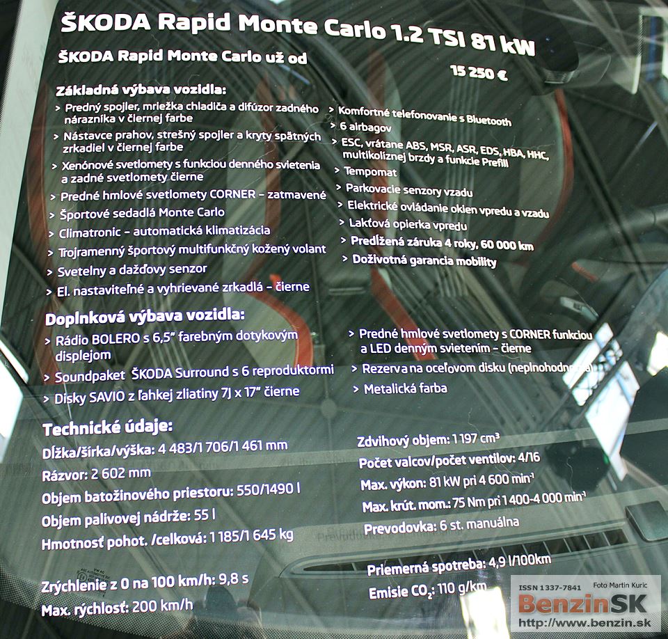 Rapid Liftback Monte Carlo 1,2 TSI / 81 kW