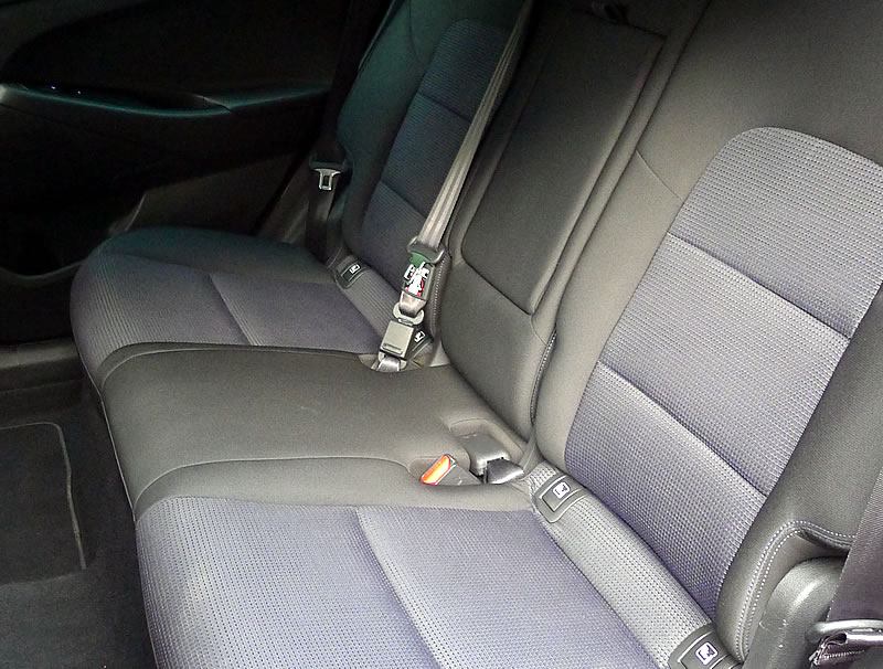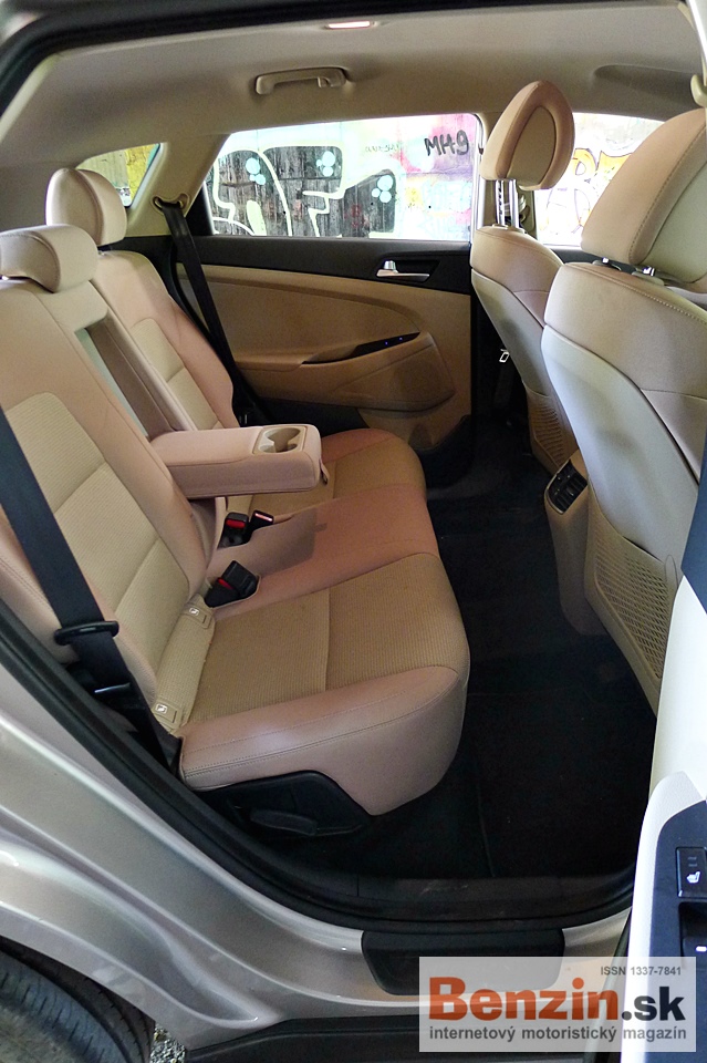 Zadné miesta na sedenie zapadajú hlboko pod spodnú hranu okien a dospelým pasažierom vidieť len hlavu. Deti vidia dobre, ak sú vo vysokej detskej sedačke. Praktické sú okopové plastové obklady predných operadiel s odkladacími sieťkami. Potešia aj výduchy vetrania na stredovej konzole. Zo stredného miesta možno vyklopiť lakťovú opierku a je to určite lepší nápad, než v strede sedieť, keďže je tam tvrdo ako za trest. Vnútorná šírka interiéru dovoľuje dať vzad dve detské sedačky a ešte si k nim sadnúť, prípadne skrátka odviezť troch ľudí (áno, chudák stredný/á).