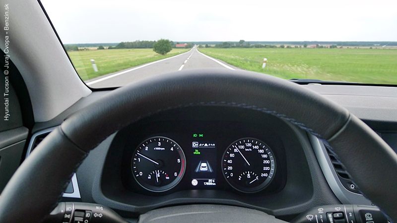 Automat spolu s výkonnejším motorom je skvelá dvojica. Krátke odstupňovanie pripomína benzínový motor, radí pomerne rýchlo, rýchlejšie, než sa dá s manuálom. Tucson je aj výrazne rýchlejší na šprinte, je reakčnejší, pružnejší a zároveň pohodlnejší. Keď treba viac rozmýšľať, napr. náhly kick down za jazdy, či okamžitý štart z nuly, objaví sa slušná premlka. Cítiť je aj jemné trhanie pri rozbiehaní a pri preraďovaní z 1. do 2. prevodového stupňa. Nemalo by to byť a viackrát som sa zamyslel ohľadne trvanlivosti prevodovky. Inak automat rád komunikuje a plní vodičove očakávania. A pri neštandardných situáciách sa vždy dá použiť manuálna voľba stupňov. Imitácia hydromeniča tu je tiež, povestné plíženie sa. Snaha je vždy sa dostať čo najskôr na 1. stupeň. Pri jemnom popúšťaní brzdy sa to však nestane a čo to robí so spojkami ani nechcem vedieť. Pri jazde na 7° sa Tucson tohto stupňa drží ešte aj pri 1250 ot., udržuje rýchlosť, či plynule zrýchľuje a tento stupeň preňho vôbec nie je ťažký, dynamiku cítiť aj v rýchlostiach nad 100 km/h. Robot sa nesnaží zakaždým podradiť. Radí najneskôr pri 4500 ot., pretočenie ani podtočenie nedovolí.