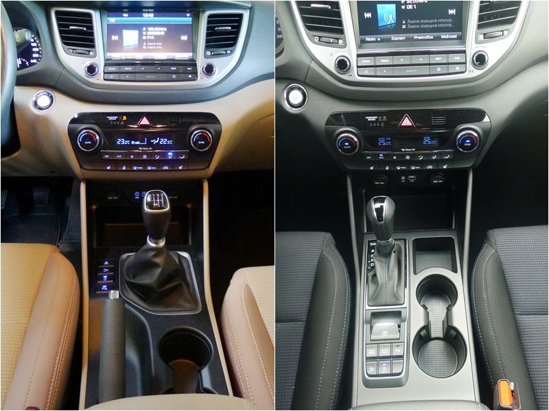 Mal som možnosť vyskúšať dvoch Tucsonov v rovnakej výbave, s rovnakým objemom motora a pohonom (predný), jeden s manuálnou a druhý s dvojspojkovou automatickou prevodovkou. Manuál bol s bledohnedo-čiernym interiérom, automat s celočiernym. No a teraz sa pozrieme na spoločné veci ako aj rozdiely.
