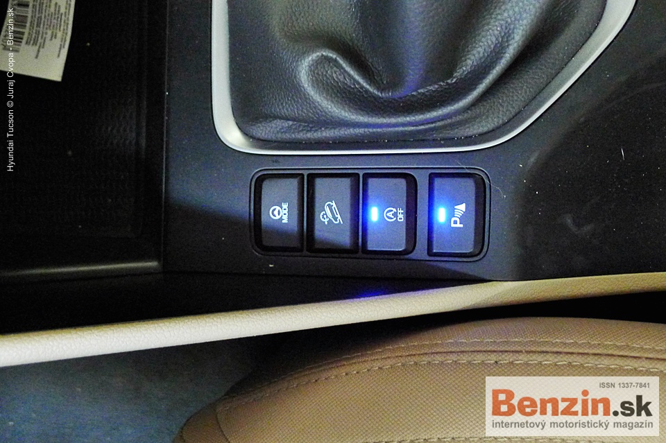 Stredová konzola nesie okrem ovládača prevodovky aj fukčné voľby ako nastavenie módu posilovača riadenia (s citeľným vytuhnutím volantu), hlasitosť parkovacích senzorov, deaktiváciu automatického vypínania motora (škoda, že sa nedá aktivovať na trvalo) a asistent zjazdu z prudkého kopca (funguje dobre, len sa obávam o výdrž bŕzd). Poteší tu aj miesto na dva poháre, či fľašky a v zadnej časti široká lakťová opierka aj na dva lakte s hlbokým odkladacím priestorom. Čo sa spolujazdca týka, posed v poriadku, aj keď si musí vystačiť s úplne základnou nastaviteľnosťou. Pred seba dostal skutočne neveľkú odkladaciu schránku, no chladenú.