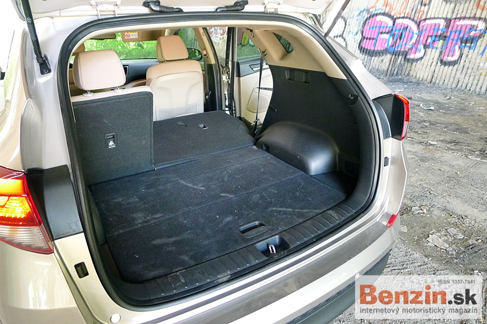 Operadlá sú tu polohovateľné a tou istou páčkou aj sklopiteľné do roviny s podlahou batožinového priestoru. Tá je zhotovená z čalúnenej dosky, ktorá sa dá umiestniť do dvoch výškových polôh. Odporúčam tú nižšiu, kedy spodná hrana dosadne na príslušenstvo (rezerva alebo kit na opravu defektu). Pri plnom naložení v hornej polohe sa doska prehýba a hrozí jej nielen vyšmyknutie z pozdĺžnych lyžín, ale aj trvalé prehnutie. Vysoká stavba karosérie takmer pohlcuje obidve nadkolia, čo zväčšuje objem pre batožinu, podobne ako voľba lepiacej sady namiesto rezervného kolesa. Mladá rodina s dvomi deťmi sa na dovolenku zbalí, ale je to natesno, pokiaľ sa berie aj kočík a treba využiť miesto pred spolujazdcom. Singles by objem kufra riešili v prípade dovolenky s priateľmi tiež, no ak uvažujú len s bežnou batožinou, zbalia sa v pohode. Bicykle sa dajú dať na strechu v rámci originálneho príslušentva, kto sa potápa, či surfuje a rád sa prezlieka sediac na kraji kufra, môže dokúpiť viacero druhov ochrán nárazníka.