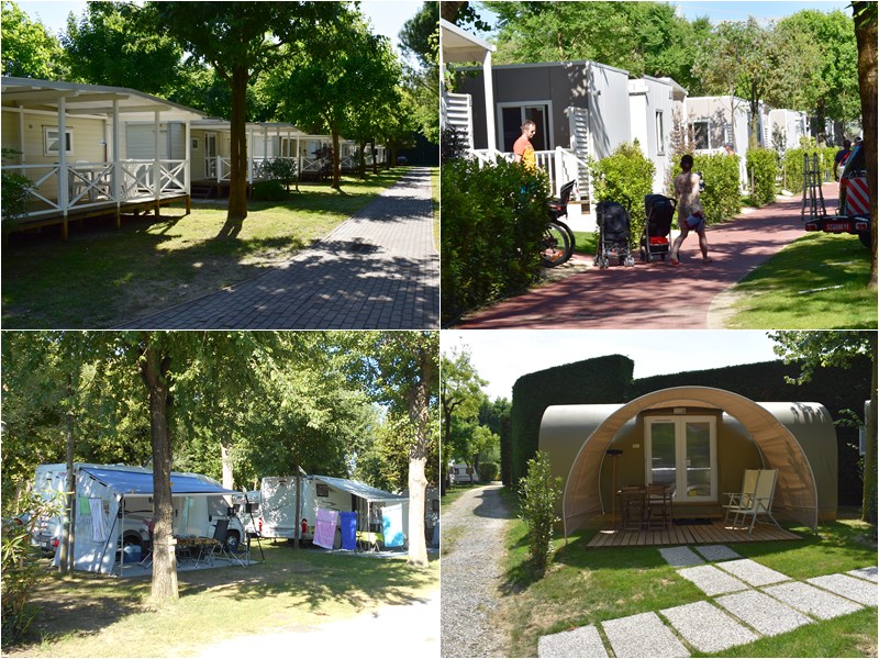 Kemp je rozdelený podľa typov ubytovania. Hneď od recepcie, v blízkosti vodného sveta, sú v uličkách umiestnené rôzne typy domčekov, potom už bližšie k moru a ďalej od recepcie sú miesta pre karavany, obytné autá, prívesy a stany. Uprostred kempu sú potraviny, reštaurácie, bar, zmrzlina, obchodíky s typickou letoviskovou ponukou a takmer na pláži je veľká reštaurácia.