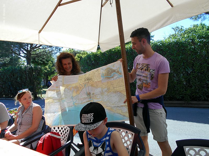 ![]() Maskot kempu - korytnačka Yupi (c) Benzin.SK Dvakrát denne je otvorený detský klub - doobeda v špeciálnych priestoroch v blízkosti recepcie a večer zasa uprostred kempu na špeciálnom pódiu. Animátori sa deťom venovali naplno - hrali sa a bavili. Maskotom kempu je korytnačka Yupi a vždy, keď zaznela špeciálna zvučka, deti už vedeli, že príde. Fotili sa s ním, tancovali, hrali sa. V kempe bol na viditeľných miestach umiestnený aj denný rozvrh. Program (v cene ubytovania) začínal hneď ráno napríklad cvičením tai chi, jógy, vodným aerobikom, výukou taliančiny, nemčiny, angličtiny pre dospelých i deti, rôznymi kreatívnymi programami pre deti. Večer bola samozrejmosťou zasa detská diskotéka. ![]() Supermarket v kempe (c) Benzin.SK V cene ubytovania nie je strava. Raňajky sme si kúpili v supermarkete a deň sa na terase začínal čerstvým pečivom, prosciuttom, mozarellou a plnenými croissantmi. Potraviny sú v kempe o trochu drahšie ako mimo neho, ale to je cena za luxus a pohodlie, že človek nemusí ďaleko chodiť. Na obed sme sa zastavili v snackbare, kde bol naozaj veľký výber od grilovaného kuraťa, cez burgre, rezne, morské plody,... ![]() Chutné jedlá z reštaurácie (c) Benzin.SK Večerali sme vo výbornej reštaurácii priamo pri mori. Keďže máme veľmi radi pizzu, dali sme si ju hneď v prvý večer. Mali ich nekonečný výber - od klasických, aké poznáme aj na Slovensku, až po napríklad Frutti di Mare, ktorá je z čerstvých mušlí. Ceny sú primerané a jedlo veľmi chutné. Samozrejme, v ponuke majú aj iné jedlá, typicky talianske a prímorské (garnely, krevety, mušle, rôzne ryby, zeleninové a mäsové pochúťky, ale aj sladké - prekvapilo nás, že pre Taliansko nie sú typické palacinky, nebývajú v ponuke). Nielen jedlá, ale aj zmrzlinu mali fantastickú. A k tomu víno a tradičný Aperol Spritz úplne ladili ku krásnemu večeru. Nad vchodom do reštaurácie každého zaujme fotografia nášho Mareka Hamšíka, ktorý je tu v Taliansku veľkou hviezdou. Neapolský majiteľ reštaurácie dokonca vie, že pochádza zo Slovenska a z Banskej Bystrice! ![]() Krásne cyklovýlety do okolia, Cavallino (c) Benzin.SK Keďže je v okolí kempu veľa cyklociest, dajú sa tu za poplatok požičať bicykle pre dospelých, aj pre deti. Pre deti sú k dispozícii aj prilby. Aj my sme sa vybrali do okolia a veľmi sa nám páčilo, že miestami bola cyklocesta široká ako normálna cesta pre autá. V prípade záujmu je tu k dispozícii aj sprievodkyňa, ktorá sprevádza na bicykli a porozpráva o vzniku Benátok, lagúny a o jedinečnej a vzácnej prírode okolo Cavallina. ![]() Benátky (c) Benzin.SK Bola by škoda nenavštíviť Benátky, ktoré sú veľmi blízko. Ale to už nie na bicykli. Neďaleko kempu je autobusová zastávka MHD, stačí sa odviesť na konečnú do prístavu Punta Sabbioni, odkiaľ premáva pravidelná linka do Benátok. My sme sa do prístavu odviezli autom, predsa len to bolo pohodlnejšie. Plavili sme sa asi 30 minút, kým sme pristáli pri jednom z prístavných mól v Benátkach. Keďže sme prišli poobede, potom sme si už len strážili čas, aby sme nezmeškali poslednú loď naspäť, do nášho prístavu. ![]() Čerpacia stanica, Lido di Jesolo, Taliansko (c) Benzin.SK