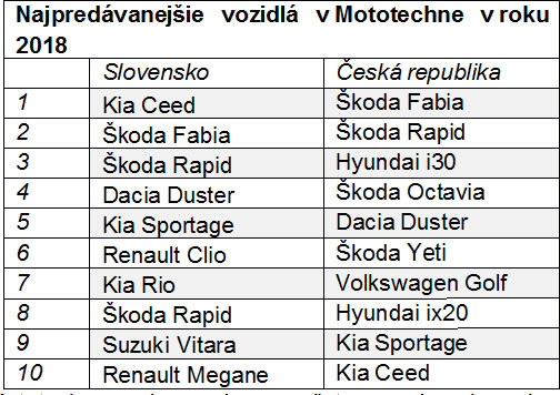 Najpredávanejšie vozidlá v Mototechne v roku 2018: