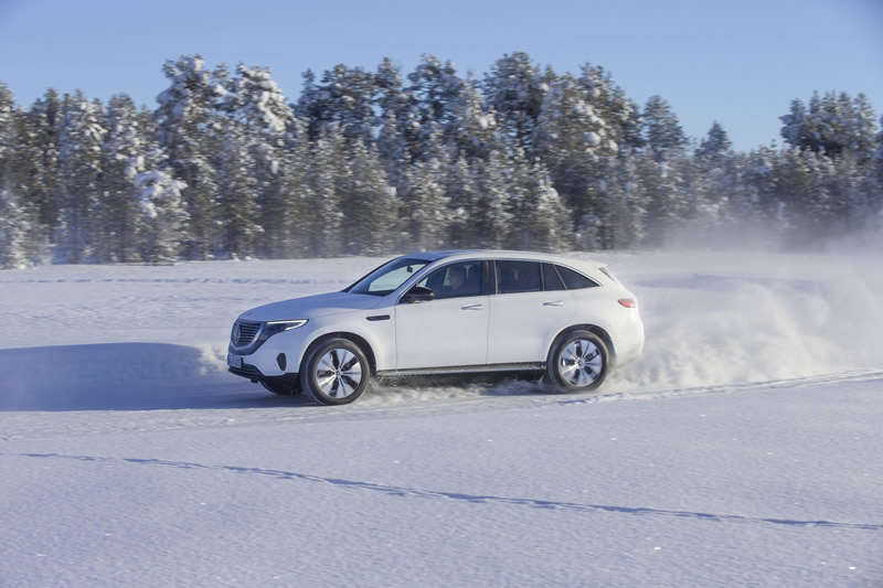 Krátko pred uvedením na trh vozidlo EQC (kombinovaná spotreba elektrickej energie: 22,2 kWh/100 km; kombinované emisie CO2: 0 g/km, predbežné údaje) ešte poslednýkrát brázdilo švédsku zasneženú krajinu.