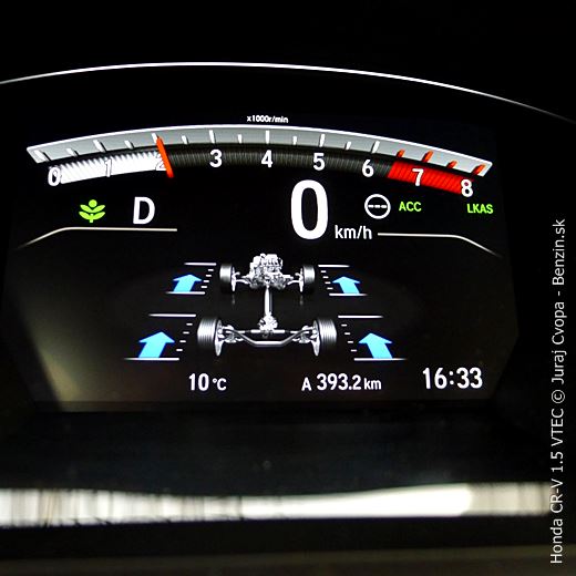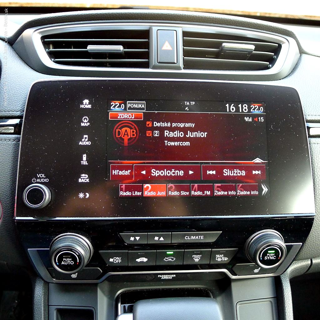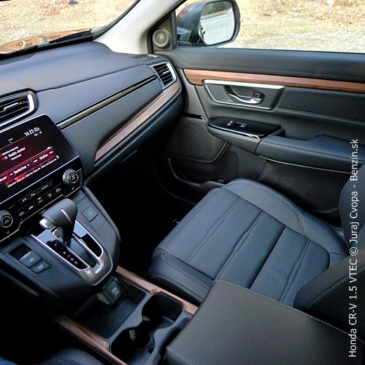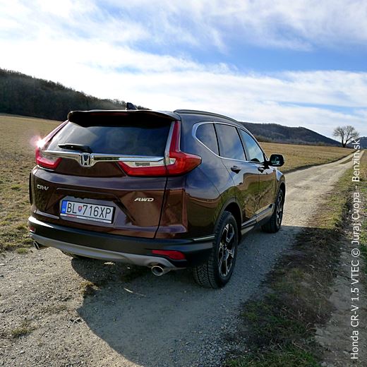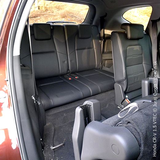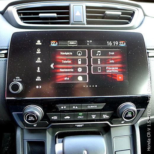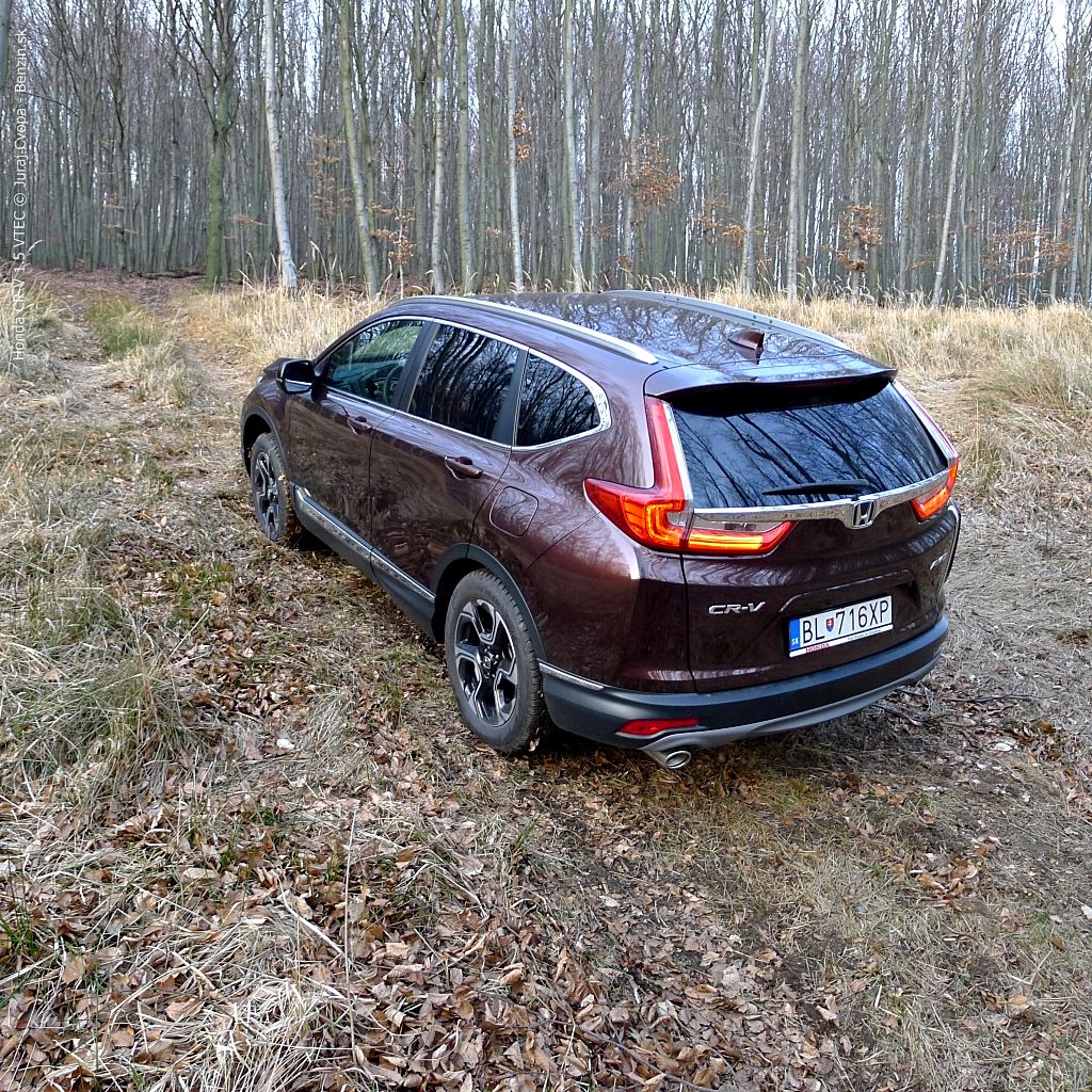 ![]() Do oka udrie značná svetlá výška, ktorá oproti predchodcovi narástla o 35 mm a tak CR-V vyzerá naozaj súca na lesné cesty a kopce, či na zimné dovolenky. A zemitá hnedá metalíza celok podporuje v jeho vlastnostiach, ako uvidíme nižšie. InteriérTak hlavne sa doň treba dostať a to je jeden z dôvodov, prečo si človek SUV kupuje, ľahkosť nástupu. Vodič sa len presunie vo vodorovnej línii za volant. Ten je so svojimi ovládačmi a hrúbkou akurát do ruky. Prístrojový štít mi pripomenul legendárne motocykle Honda CBR – ten čiarový otáčkomer a číslicový rýchlomer, to určite nebude náhoda. Ani to, že je dobre čitateľný, prehľadný a farebne vyvážený. ![]() Podobne aj infotainment, prvý krát som na to pozrel a viac menej bolo jasné čo a ako, pomohla aj lokalizácia do slovenčiny. Navigácia vie ponúknuť viacero ciest priamo na mape, čo som ocenil, keďže nebolo treba nastavovať a vypínať diaľnice, keď ich nechcem použiť. Cez obrazovku infotainmentu sa ovláda aj smer prúdenia vzduchu vetrania či klimatizácie, na intenzitu ešte ostali tlačítka, čo oceňujem. ![]() Potešia aj nabíjacie možnosti vrátane viacerých USB, ale aj pripojenie HDMI. Stredová lakťová opierka je široká na dve ruky, čo dobrorečia spolujazdci, keďže vodič ju nezaberie celú. Mimo to je aj posuvná, akurát do výšky sa jej nechce. A tak musím ísť dolu so sedadlom. Premyslená stredová konzola poslúži aj peňaženkám, či smart vecičkám, ktorým dochádza šťava. Výborné je audio. Chytá signál tam, kde staršie autá ani nechyrujú, že nejaký je. Napr. sa dá počúvať Slovenský rozhlas vo Viedni a po pravde som objavil aj novú stanicu. ![]() Nebudem menovať Rádio Junior, ale je to skvelá pomôcka pokiaľ máte v aute deti. Celú cestu ani nepípnu. Jediný krát som musel pozerať na otrčenú spodnú gambu staršej dcéry, keď som jej oznámil, že na sedadle spolujazdca nie je Isofix a teda ide opäť dozadu. Keď sme pri deťoch a detských sedačkách, tie sú vždy na krajných zadných sedadlách. Upevňujú sa výborne, kotviace body vidno pod poťahmi upevnenými suchým zipsom. Operadlá druhej rady sedadiel sa dajú polohovať a sedačky ako také pozdĺžne posúvať, čo iste ocenia mnohí. Má to aj iný význam. Posuv totiž dopĺňa možnosť celú sedačku vyklopiť vpred, čo buď zväčší batožinový priestor, alebo umožní nástup do tretej rady sedadiel. A tam sa teraz presunieme. ![]() Objavíme tu dve nezávisle sklopné sedačky plnohodnotných rozmerov. Sedenie na týchto miestach presunie kolená do výšky. Pre komfort v poslednej rade je nutné posunúť strednú radu vpred a teda tam bude trošku menej miesta na nohy. Stále je to však plne použiteľná konfigurácia a iste ju ocenia užívatelia, ktorí príležitostne vezú viac osôb. Nutno podotknúť, že batožinový priestor sa pri sedemmiestnej konfigurácii scvrkne na minimum. No aj tak tu ešte nájdeme mini dvojitú podlahu a možnosť nejako sa vynájsť a čo to odložiť. Jej veko je veľmi robustné a znesie záťaž, pod ním nájdeme polystyrénovú vložku a pod ňou dojazdovú rezervu s náradím. Palec hore za to, normálne sa už dáva len lepiaca sada a tú pri väčších škodách na pneumatike nemožno použiť. ![]() Ak sa tretia rada nevyužíva a je sklopená, tvorí na podlahe mierny stupienok. Objemný batožinový priestor sa dá deliť sklopením operadiel tretej aj druhej rady potiahnutím za textilné tiahlo na ich vrcholci. Vyklopenie naspäť je ľahké. Veko piatych dverí sa obsluhuje manuálne a otvára sa dostatočne vysoko aj pre odrastenejšíe postavy. PohonMáme tu benzínový motor objemu 1.5 s preplňovaním turbodúchadlom o výkone 142 kW a krútiacom momente 243 Nm. Ďalej prevodovku s plynule meniteľným prevodovým pomerom CVT s možnosťou usmerňovania prevodového pomeru pádlami pod volantom v rámci fiktívnych prevodových stupňov. ![]() Náhon na štyri kolesá Real Time 4WD poháňa primárne prednú nápravu a podľa aktuálnej potreby smeruje hnaciu silu aj na tú zadnú, treba rátať so softvérovým obmedzením toku krútiaceho momentu v prípade hrozby preťaženia zadného diferenciálu. K tomu som si prečítal v návode na použitie, že CR-V je primárne stavaná na použitie na spevnených cestách a väčšia svetlá výška sa dá použiť na cestách lesných. Takže žiadny off-road prosím.