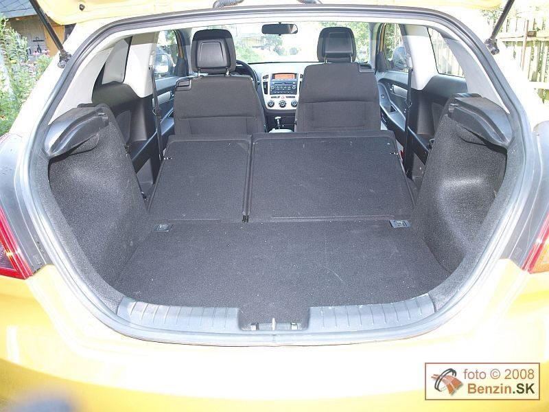 Nastupovanie na zadné sedadlá je ako pri všetkých trojdverových automobiloch trochu zložitejšie. No po nasadnutí aj na zadné sedadlá tam nájdete dostatok priestoru aj vďaka nezmenenému rázvoru, oproti modelom cee´d a cee´d SW. Len nad hlavou trochu uberá z miesta klesajúca strecha. Aj tento typ karosérie sa ukázal dostatočne variabilný, keď po sklopení zadných sedadiel podstatne rozšíril možnosti batožinového priestoru. Multifunkčný volant sa nastavoval v dvoch osiach a dobre padol do rúk. Vôbec, celé ovládanie automobilu bolo veľmi príjemné. Podvozok bol o poznanie tvrdší, ako sa na športovejšie ladený automobil patrí, a pekne poslúchal aj pri dynamickejšom prejazde zákrutami. Tam nás dobre podržalo aj dobré tvarovanie čalúnenia sedadiel.