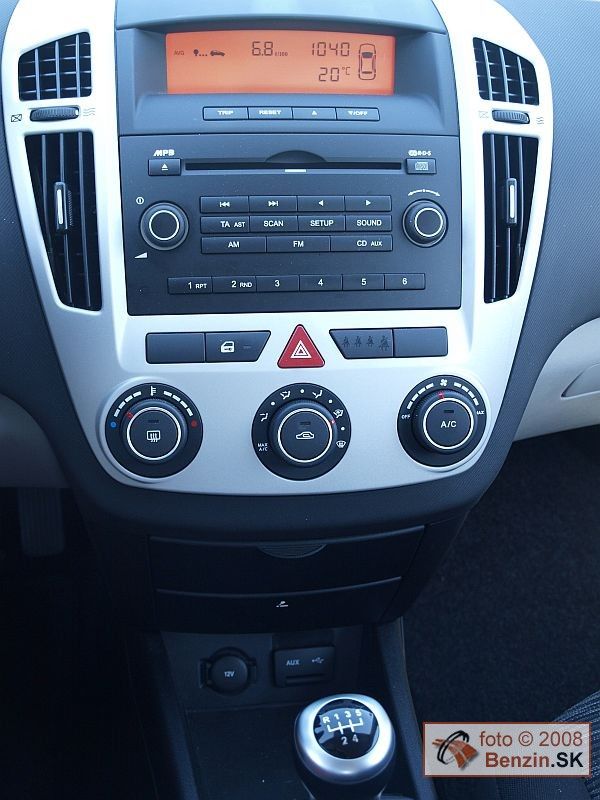 Tvary prístrojového panelu sú oživené kovovo lemovaným stredom s autorádiom a mechanickou klimatizáciou. Autorádio ponúka nad štandard v možnosti napojenia externého zdroja MP3, či iPod.