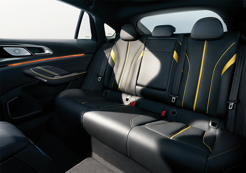 Posádku v interiéri privítajú prémiové materiály a odvážny dizajn sedadiel s farebným lemovaním, ktoré sa prenieslo aj na prístrojovku. Tá má ambientné osvetlenie a rozmerný stredový tunel, na ktorom sedí aj obrovský na výšku orientovaný centrálny displej infotainmentu.