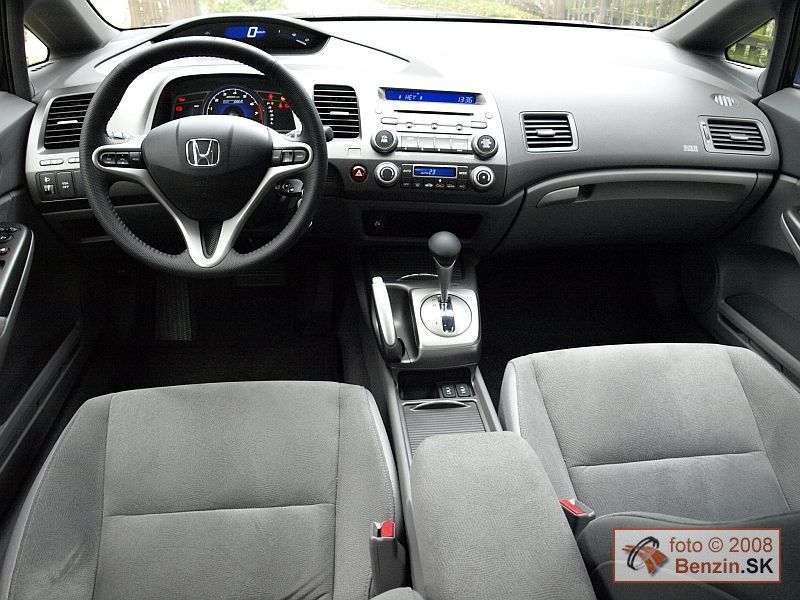 Ten informuje aj o spotrebe. Ani jeden motor, ani ten spaľovací nie je v kabíne počuť. Dvojzónový futuristický panel bol prevzatý z päťdverového modelu Honda Civic, aj s bohatou elektronickou výbavou. Zachované ostali aj výborné jazdné vlastnosti, s trochu tvrdším podvozkom, ktoré podporuje ABS a stabilizačný systém VSA. Pre tento model je určený len jeden druh komfortnej výbavy. Štyri displeje informujú okrem iného aj o prevádzkových pomeroch hybridného systému, v digitálnej forme o rýchlosti, nastavení klimatizácie, palubného počítača a podobne . Pomocou elegantného multifunkčného volantu nastaviteľného v dvoch rovinách sa ovláda aj tempomat.
