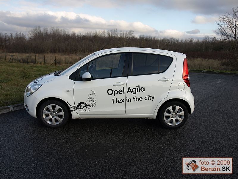 Keďže ide o dvojčatá, môžeme skonštatovať len to, čo sme hovorili pri teste Suzuki Splash, nový Opel Agila je skutočne vonkajšími rozmermi malý mestský automobil, no pohľad naň sa zmení, keď si doň sadnete. Dostatočný priestor, ktorý vás obklopuje, akoby nekorešpondoval s údajmi o rozmeroch karosérie. Z rozmerov mini auta sa trochu vymaňuje údajom o výške karosérie, ktorá vytvára dojem priestoru a zároveň posúva karosériu aj do kategórie mini vanov. Vyššia karoséria vytvára priestor pre posádku, s ktorým jeho majiteľ môže byť spokojný. Oproti hranatej karosérii predchodcu, prináša nová Agila oblé, príjemné tvary, ale aj dostatočnú dávku dynamiky. Pätoro dverí zasa umožňuje bezproblémový prístup na sedadlá, aj do kufra.