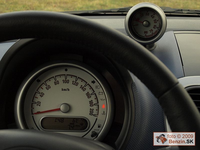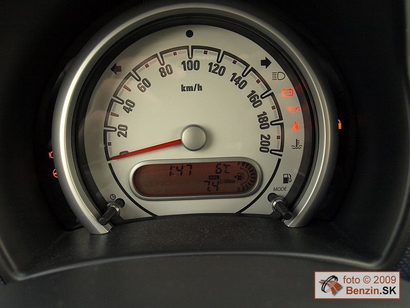 V jeho vnútri sme sa navyše pri strednej výbave Enjoy stretli na takýto malý mestský automobil s nadštandardnou výbavou. Multifunkčný volant mal výškové nastavovanie. V prístrojovom paneli zaujal veľký kruhový prístroj v retroštýle a otáčkomer si našiel miesto, mimo centrálnej oblasti, bol pripevnený ako satelit na prístrojovom paneli.