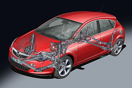 Pre prichádzajúcu generáciu Astry vyvinuli konštruktéri značky Opel celkom novú geometriu podvozka s dlhým rázvorom a širokým rozchodom. Toto usporiadanie dodáva vozidlu citeľne viac agility a stability. Navyše k tomu sa zlepšuje aj komfort.