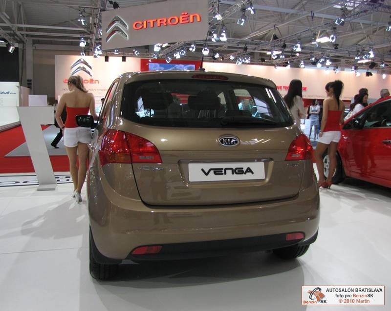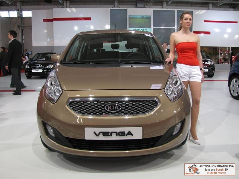 Značka Kia venuje bratislavský autosalón hlavne svojej novinke, dizajnérsky a priestorovo neprehliadnuteľnému vozidlu Kia Venga, ktoré v týchto dňoch zažíva svoju slovenskú výstavnú premiéru. Kia Venga budí pozornosť na cestách a priťahuje pohľady ľudí už od svojho uvedenia na slovenský trh, ktoré sa uskutočnilo v januári tohto roku. Úplne nové MPV zo segmentu B s označením Venga má na vozidlo svojej kategórie nezvyčajne dlhý rázvor kolies (2 615 mm) a výšku až 1 600 mm, vďaka čomu ponúka skutočne veľký vnútorný priestor. Vďaka šikovnému usporiadaniu Venga nasadzuje nový štandard vo svojej triede; s vonkajšími rozmermi vozidla zo segmentu B ponúka vnútorný priestor typický pre väčšie vozidlá zo segmentu C. Každý motor montovaný do modelu Venga je k dispozícii s technológiou ISG (Idle Stop & Go) a spĺňa emisnú normu Euro 5. Nové MPV Kia Venga sa vyrába v susednej Českej republike a je k dispozícii výhradne na európskom trhu. Kia Venga sa predáva len niekoľko mesiacov a už má na svojom konte dve prestížne dizajnérske ceny. Prvé ocenenie iF product design award získala ešte pred uvedením na európsky trh a ocenenie v celosvetovo najväčšej dizajnérskej súťaži ‘red dot 2010‘ za produktový dizajn krátko potom.