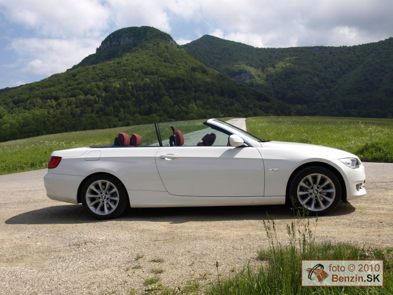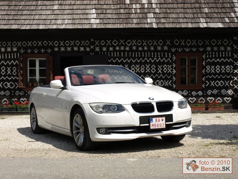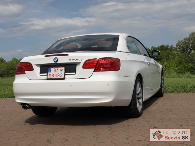 BMW 320d Cabrio prešiel pred tohtoročnou letnou sezónou skrášľovacím faceliftom. Vychádza z trojdverovej karosérie BMW 3 Coupé, ktorá sa prvýkrát objavila v roku 2006. To posledné skrášľovanie sa dotklo najmä prednej a zadnej časti vozidla, celková dĺžka vozidla narástla o 3 centimetre. Pohľad prižmúrených reflektorov sa ešte viac priostril. Tvar nárazníkov opticky automobil viac pritlačil k zemi a koncové svetlá dostali bodovú LED - polovodičovú optiku. Toto všetko nevídaným spôsobom priťahovalo pozornosť okoloidúcich. Našu pozornosť zasa pritiahol kožený interiér odetý do okrovo-červenej kože. Jednoducho vidieť to a nesadnúť si dovnútra by bol asi hriech. Ako sa na športový kabriolet patrí, výbava bola nadštandardná.