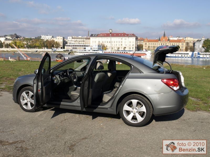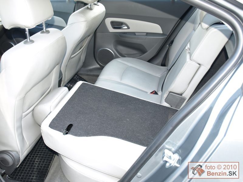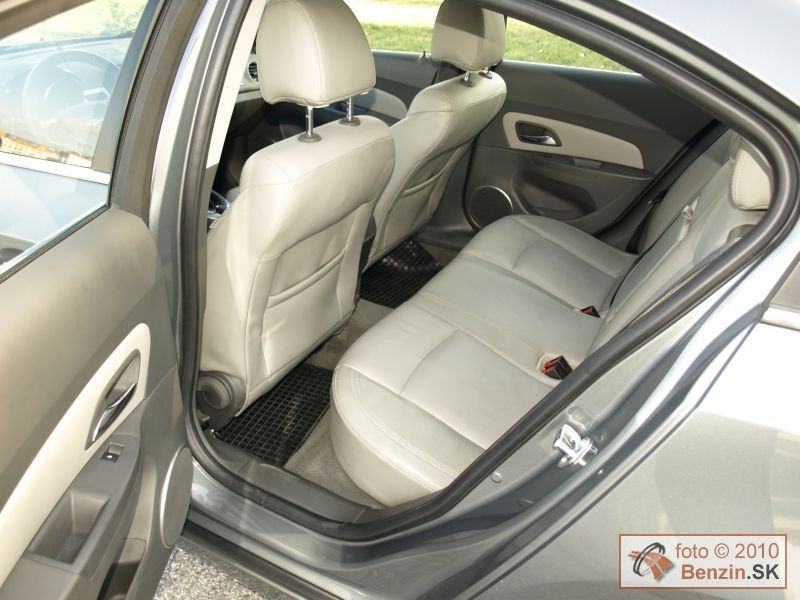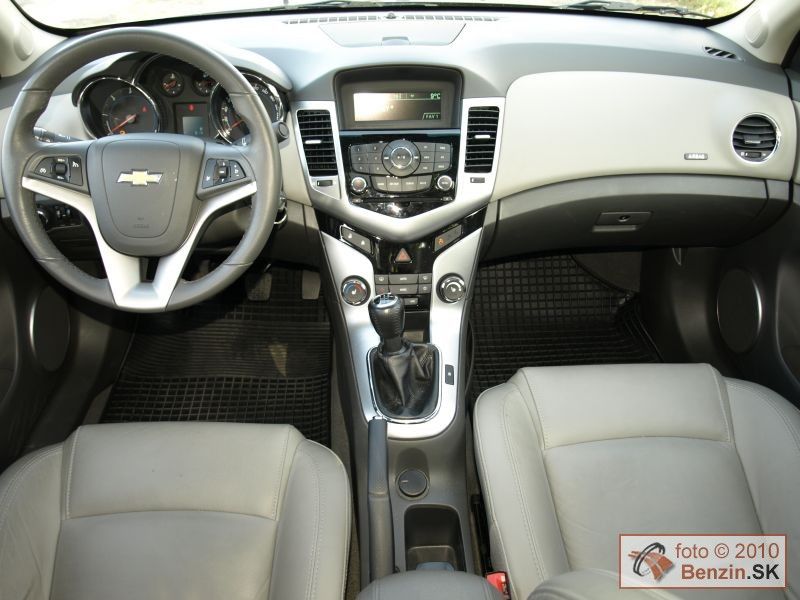 V našom prípade kombinácia tmavosivej s krémovou farbou pôsobila sviežo a všetky ovládacie prvky boli na mieste, kde sme ich podvedome hľadali. Spokojní sme boli aj s radením rýchlostí a s vyváženými jazdnými vlastnosťami. Kožená výbava stupňa LT napĺňala požiadavky na komfortné cestovanie, čo podporovalo pocit, že sa nachádzate v automobile o stupeň vyššej triedy. Multifunkčný volant nastaviteľný v dvoch osiach, vyhrievané predné sedadlá, tempomat, parkovacie senzory, dvojzónová klimatizácia, elektricky ovládaná strecha to všetko tento pocit umocňuje. Navyše automobil pôsobí zvonku opticky menším dojmom, ako potom dostatkom priestoru oplýva vo vnútri. Z tohto pohľadu sa javí dostatočne dimenzovaný aj kufor. Aj vstup do kufra sa nám zdal na sedan veľmi dobrý, za čo môže pomerne nízka nakladacia hrana. Priestor kufra sa dá zväčšiť po sklopení zadných sedadiel, pričom takto vzniknutý priechod do kabíny hodnotíme tiež ako nadštandardný. Táto flexibilita predurčuje Chevrolet Cruze na bezproblémové rodinné využitie.