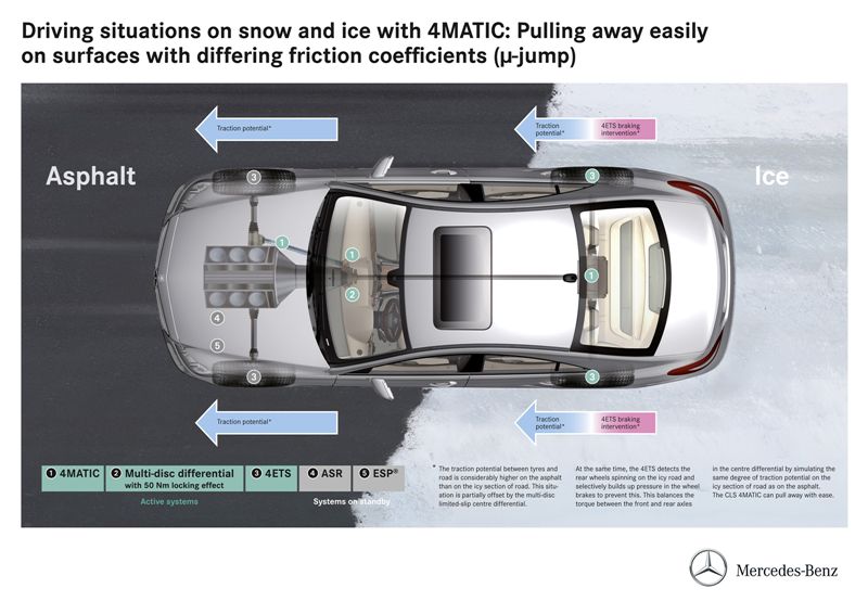 Štvordverové kupé Mercedes-Benz CLS v najnovšom vyhotovení dostalo prvýkrát stály pohon všetkých kolies 4MATIC. K dispozícii bude v modeloch CLS 350 CDI 4MATIC BlueEFFICIENCY a CLS 500 4MATIC BlueEFFICIENCY.