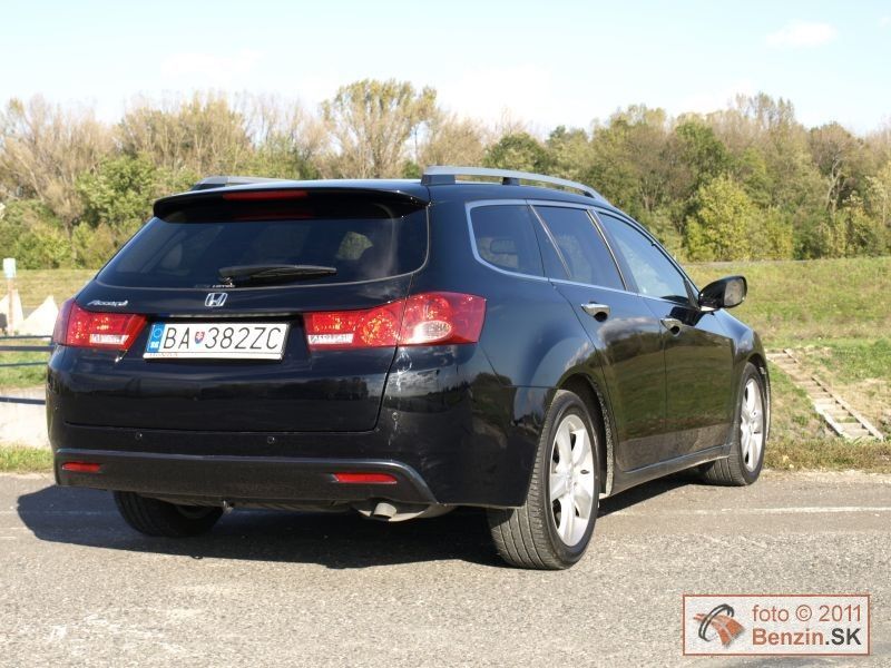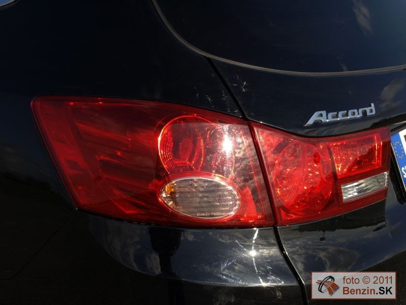 Interiér bol naozaj veľmi dobre vybavený. Cenovej triede zodpovedalo kožené čalúnenie, vyhrievané sedadlá s elektrickým nastavovaním, dvojzónová klimatizácia, elektrické strešné okno, ale aj vzhľadom na väčšiu dĺžku karosérie aj parkovacie senzory, či elektrické zatváranie dverí kufra. Suma-sumárum Honda Accord je športovo – komfortné kombi. Pri pohľade do kufra, sa tento javí trochu nižší, ako je to obvyklé. Nižšia karoséria má aj ďalšie obmedzenie, nástup a výstup z vozidla je naozaj do športového auta, teda určite nie je príjemný pre ľudí s boľavými krížami. No ak sa v tomto aute preveziete, určite vás z nej chrbát bolieť nebude. Jazda je veľmi komfortná a tichá. Sedadlá veľmi dobre tvarované, čo poskytuje aj avizovanú možnosť pre športovejšie založené povahy, oddávať sa radosti z dynamickej jazdy.