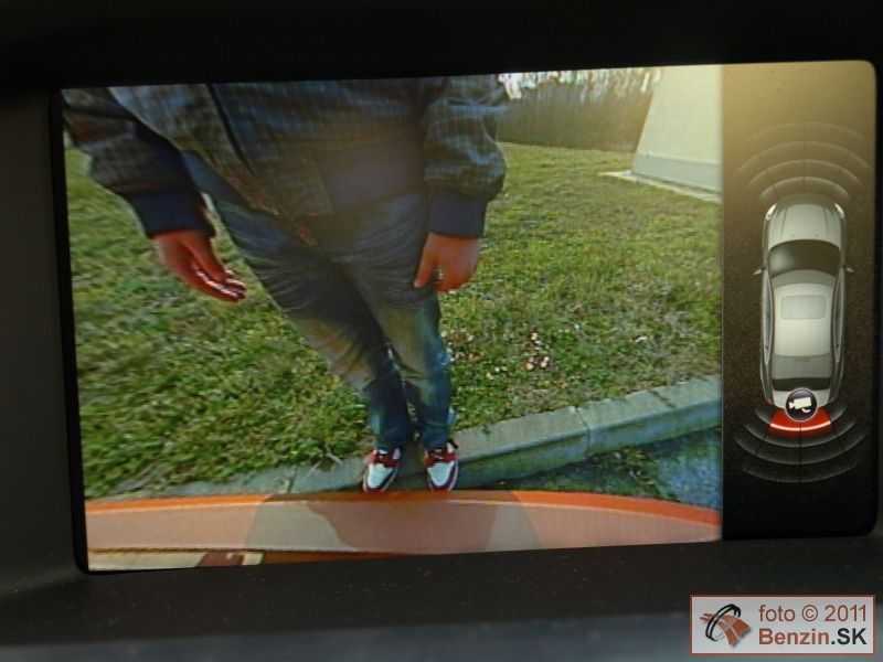 Kvôli týmto spomínaným systémom nájdete miniatúrne kamery nad poznávacou značkou v zadnej časti vozidla, ale aj v oboch spätných zrkadlách a v prednej maske. Tam sa nachádza aj radar adaptívneho tempomatu. Ten dokáže sledovať v prípade prekážky pred autom aj sám zastaviť vozidlo. A vás dodržiavanie vzdialenosti za vozidlom pred vami obmedzuje, môžete prepnúť túto funkciu len na sledovanie, kedy sa vám na prednom skle premietajú svetielka, informujúce o bezpečnej vzdialenosti za vozidlom pred vami.