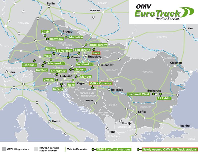 V súčasnej dobe existuje 23 staníc OMV EuroTruck, ktoré sú v prevádzke v Rakúsku, Slovinsku, Českej republike, Rumunsku, Nemecku, Chorvátsku a teraz aj na Slovensku (Ilava). V tomto roku budú otvorené ďalšie OMV EuroTruck miesta v Maďarsku, Slovinsku a Chorvátsku. Táto sieť bude rozšírená v nadchádzajúcich rokoch až na 45 miest pozdĺž hlavných európskych dopravných trás. Všetky stanice OMV EuroTruck sú uvedené na www.omv.sk/eurotruck.