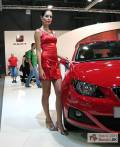 Pôsobivá červenobiela expozícia španielskej automobilky má hlavnú hviezdu - modernizovanú športovú verziu vozidla Leon FR,