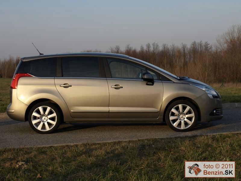 Pri pohľade zvonku je však rozdiel podstatnejší. Kým Peugeot 3008 má pôsobiť agresívnym, provokatívnym dojmom, náš Peugeot 5008 pôsobí uhladeným dojmom, podporujúcim rodinné využitie tohto rozmerného automobilu. Toto zameranie podporuje aj obrovské presklenie karosérie, spolu so strechou dosahuje plochu 3,39 m2. Samozrejme sú tu navyše dve sedadlá, ktoré sú uložené v podlahe v batožinovom priestore. Takže pri jazde s piatimi pasažiermi sa s mini odvezie aj batožina pre ktorú sa uvoľní 830 litrov priestoru.