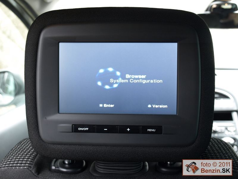 V interiéri dominuje výklopný priesvitný panel pred volantom, kde sa premieta údaj o rýchlosti vozidla, ale aj z aktívneho tempomatu s aktuálnou hodnotou o sekundovej vzdialenosti za vozidlom pred vami. Ak sa prekročí bezpečná miera, ozve sa varovný signál, tempomat však auto nezastaví, táto funkcia chýba. Family Pack zasa obsahuje aj multimediálny systém s možnosťou pripojiť DVD prehrávač, alebo hraciu konzolu s výstupom na Bluetooth slúchadlá a obrazovky umiestnené v opierkach hlavy predných sedadiel. Pri dĺžke karosérie 4 a pol metra sme ocenili predné aj zadné parkovacie senzory.