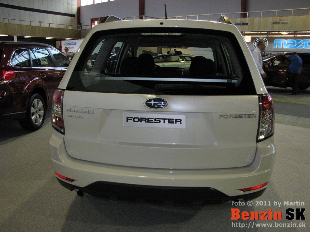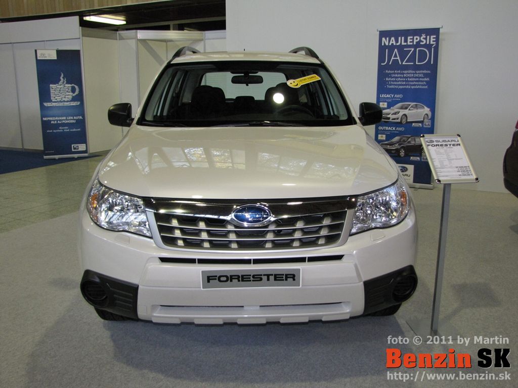 SUV Subaru Forester sa na expozícii predstavuje v dvoch verziách: benzínovej 2.0X a dieselovej 2.0D XS. Ide o faceliftovaný modelový ročník 2011 so zmeneným vzhľadom karosérie i interiéru a vybavením, obohateným o nové prvky komfortu. Auto dostalo napríklad dvojzónovú klimatizáciu, cúvaciu kameru či veľký multifunkčný farebný displej. Pozmenená konštrukcia podvozka bestselleru značky na Slovensku priniesla ešte vyšší komfort jazdy pri zachovaní nekompromisne vynikajúcich jazdných vlastností. Benzínová verzia je vybavená úplne novou generáciou motora typu boxer s objemom 2,0 litra, ktorý vyniká vysokou kultúrou chodu, pružnosťou v celom rozsahu otáčok, pričom sa podarilo o 10 % znížiť jeho spotrebu.