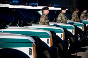 Šesť nových sprievodných vozidiel na prevoz eurobankoviek odovzdali včera policajnému Útvaru osobitného určenia (ÚOU) minister vnútra Robert Kaliňák a guvernér Národnej banky Slovenska Ivan Šramko za účasti splnomocnenca vlády SR pre zavedenie eura Igora Baráta.