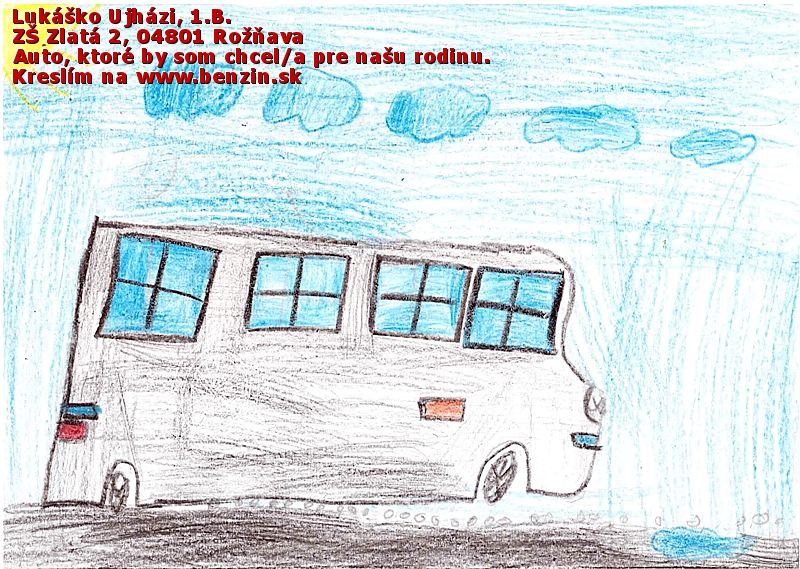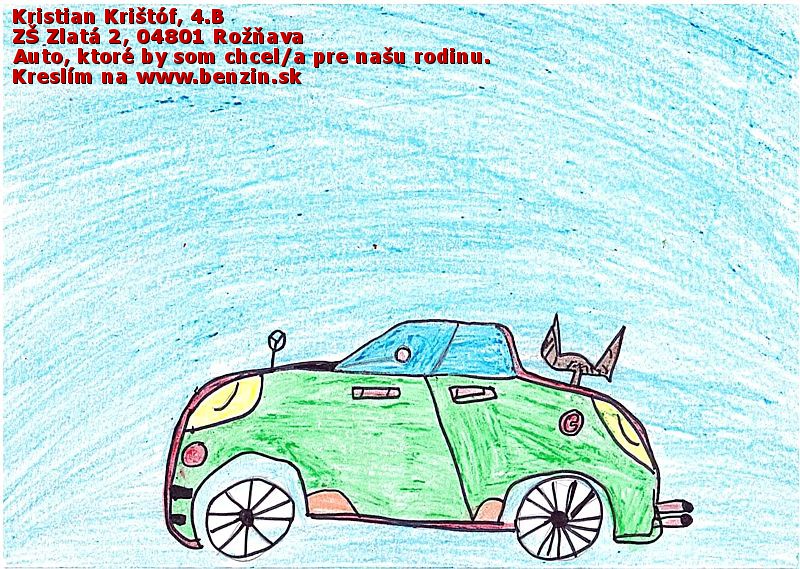 Riško Gaál nakreslil najkrajší obrázok a vystihol podstatu zadania úlohy - auto budúcnosti. Obrázok je nakreslený s veľkou dávkou fantázie.