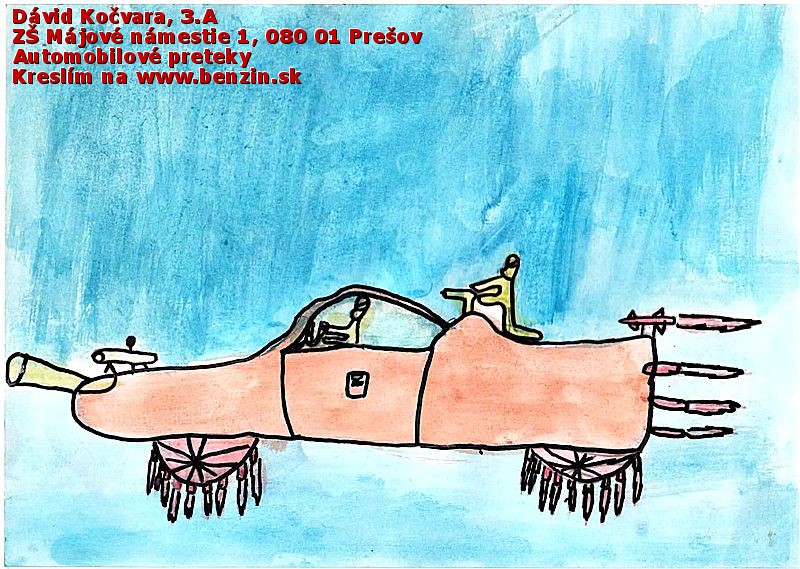 Riško Gaál nakreslil najkrajší obrázok a vystihol podstatu zadania úlohy - auto budúcnosti. Obrázok je nakreslený s veľkou dávkou fantázie.