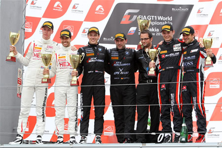 MATADOR GT1 RACING WEEKEND vyvrcholil v nedeľu Majstrovskými pretekmi vozidiel GT1, v ktorých po šikovných výmenách v boxoch vyhral nemecký tím Vita4One Racing (BMW) s holandským jazdcom Yelmerom Buurmanom a Nemcom Michaelom Bartelsom. Druhé miesto si vybojoval tím Hexis Racing (McLaren) s Francúzom Fredericom Makowieckim a Holanďanom Stefom Dusseldorpom. Tretie pódiové miesto si uchmatlo nemecké duo Marc Basseng a Markus Winkelhock z ímu ALL-INKL.COM Münnich Motorsport (Mercedes).