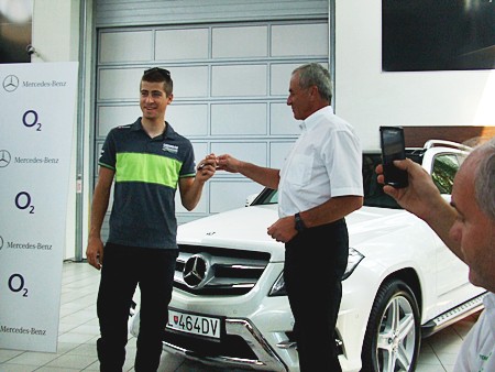 Peter Sagan si prevzal z rúk generálneho riaditeľa Andreja Glatza nový Mercedes-Benz triedy GLK