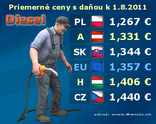 Celoúnijný priemer cien motorovej nafty stúpol o 6,02% (u nás zatial len o 3,79%).