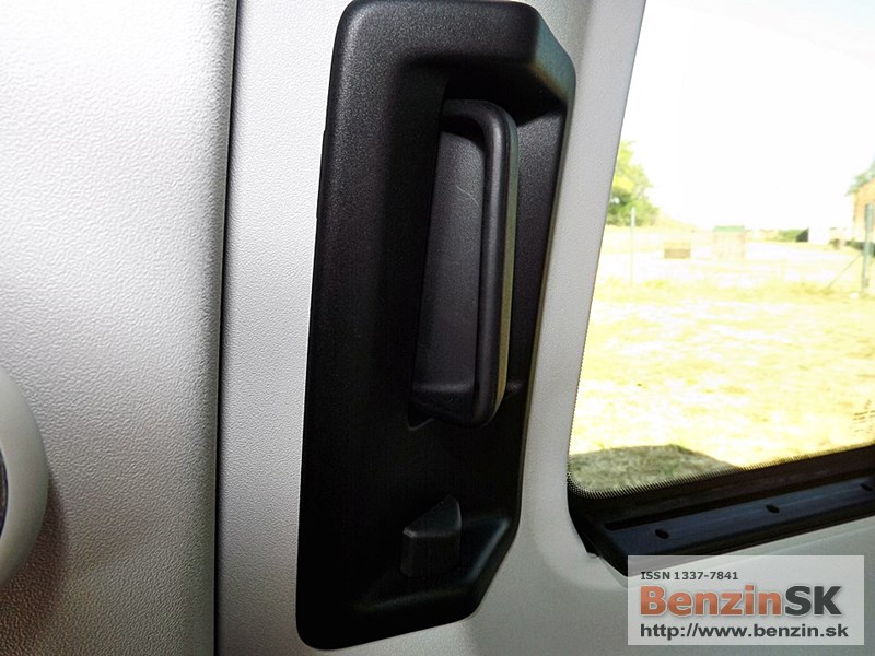 Interiér je jednoduchý ale praktický, vodič sa v ňom rýchlo zorientuje a má všetko na dosah. Interiér je obložený plastom, takže sa snaží priblížiť autu, ktoré cez týždeň pracuje, ale cez víkend vozí rodinu. Oplastované sú vnútorné stĺpiky a posúvacie dvere. ![]()