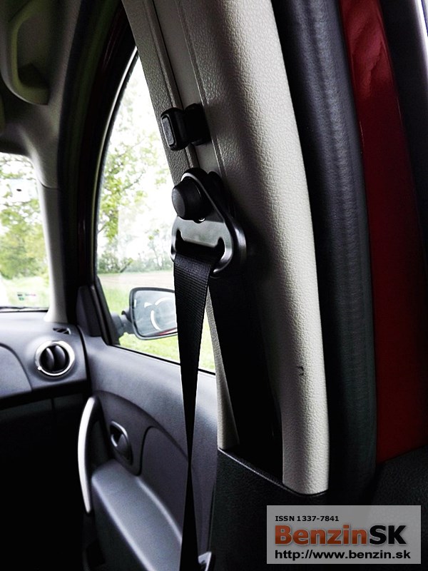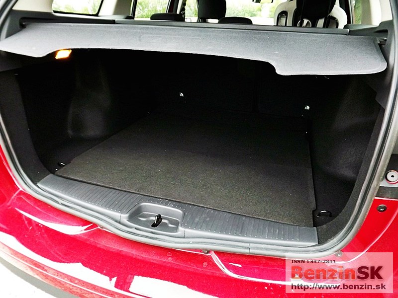 Priestor v interiéri je prakticky využitý - odkladacia schránka spolujazdca, priehradka uprostred palubnej dosky, držiak nápojov, priestor vo dverách na 1,5 l fľašu vpredu a o čosi menší aj v zadných dverách.